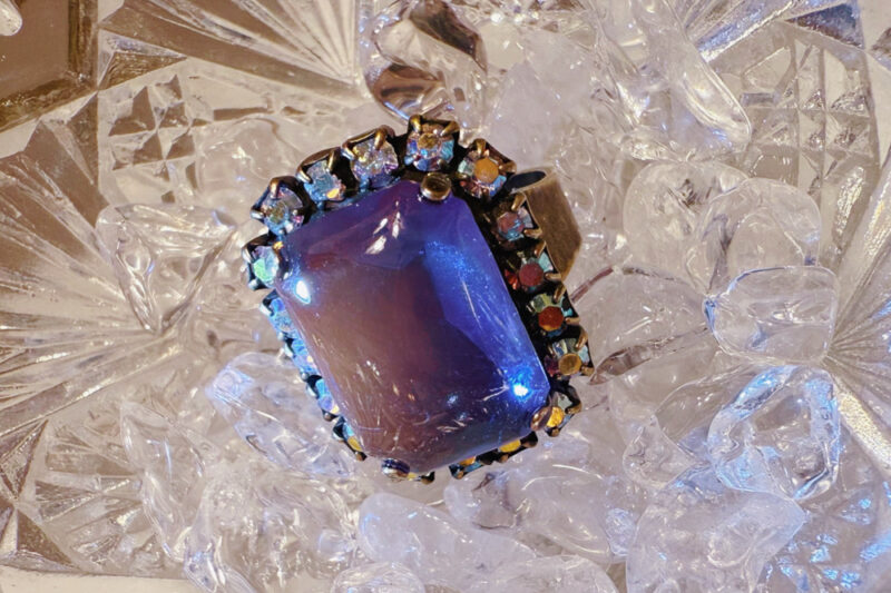 19世紀中頃、チェコスロバキアで誕生した変色ガラス「サフィレット」……その後、ドイツ等で再現した「サフィリーン」どちらも今は作られておらず希少な存在に。各時代にしかない、それぞれの美しさにうっとり…まるで魔法の国の宝石のようです。他にもドラゴンズブレス、ウランガラス、アイリスガラスなど古硝子を使用したアクセサリーをお手にとっていただけます。