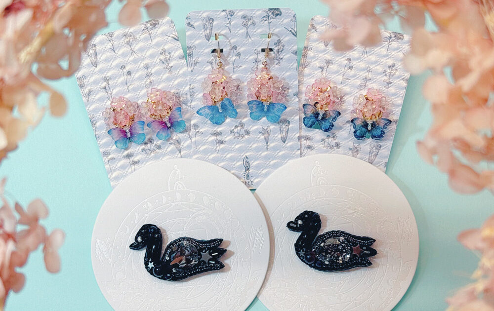 ヒトトセさんの「惑星座18周年のふしぎな動植物祭り」特別作です。 以前のスワンちゃんよりも小さめサイズが新登場🦢みずみずしい桜に、ほんのり透けて瞬く蝶の耳飾りも♪ すっきり優美に耳に添うタイプと、ゆれて可 […]