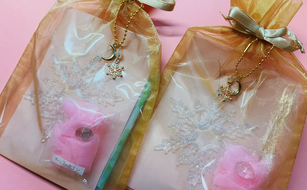 雪の結晶オーナメント・天然石スーパーセブン・入浴剤・チャーム付き。なくなり次第終了、お早めですと嬉しい特典が付きますよ♡