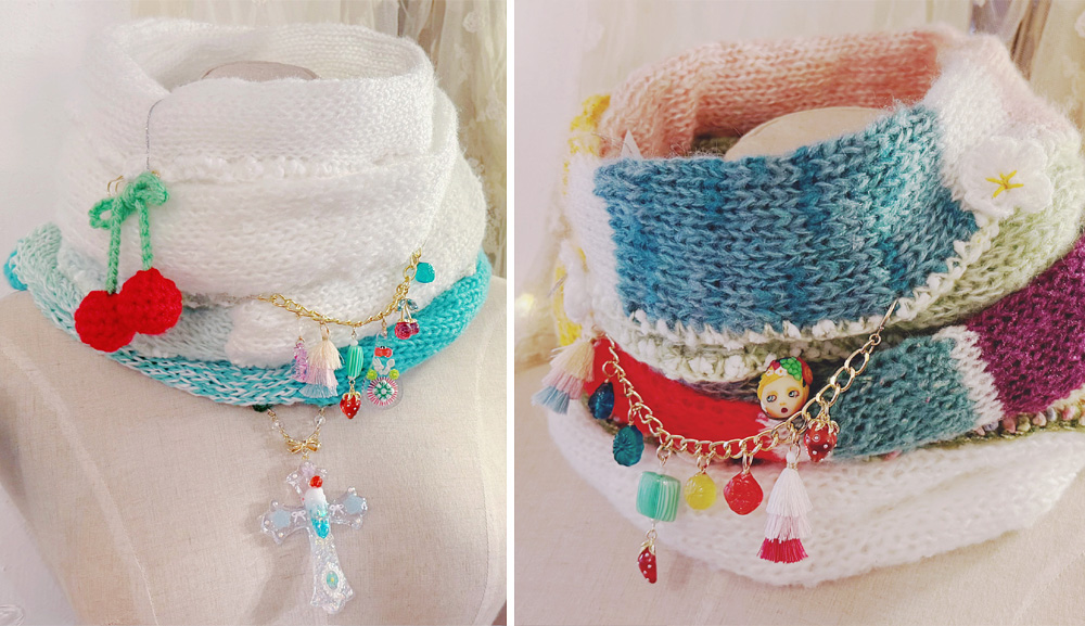 filfilohiloさんの「惑星座17周年の空想レトロ喫茶祭り」特別作と…おひさしぶりに登場のタビオトモコラボ作も♪ クリームソーダのスヌードアイスクリームの白としゅわしゅわソーダのブルーグリーンに、手編みのさくらんぼ […]